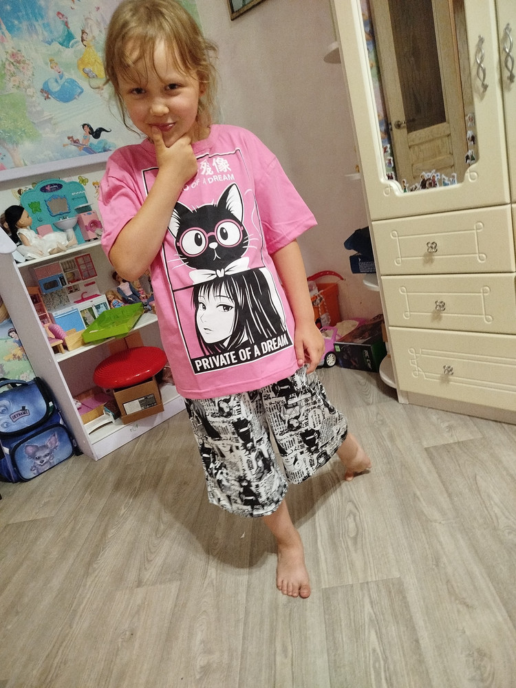 Костюм х/б. Яркий, после стирки не полинял. Футболка оверсайз.